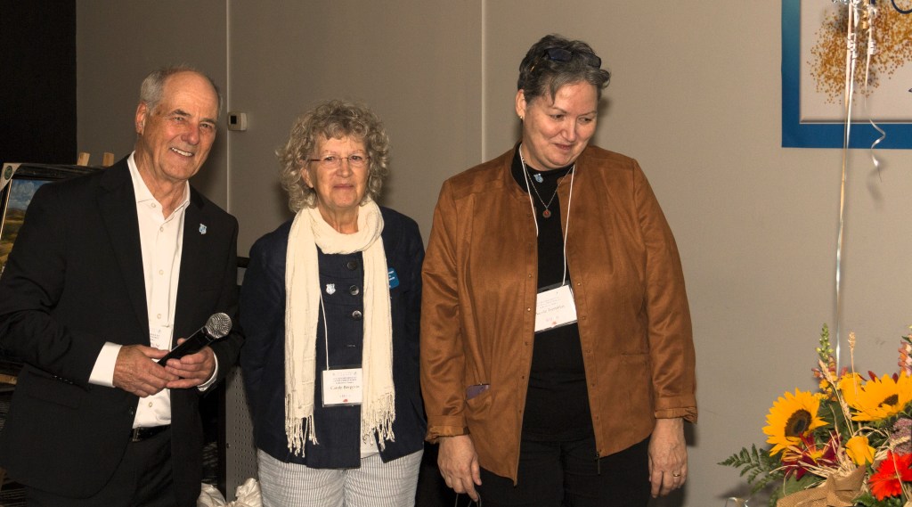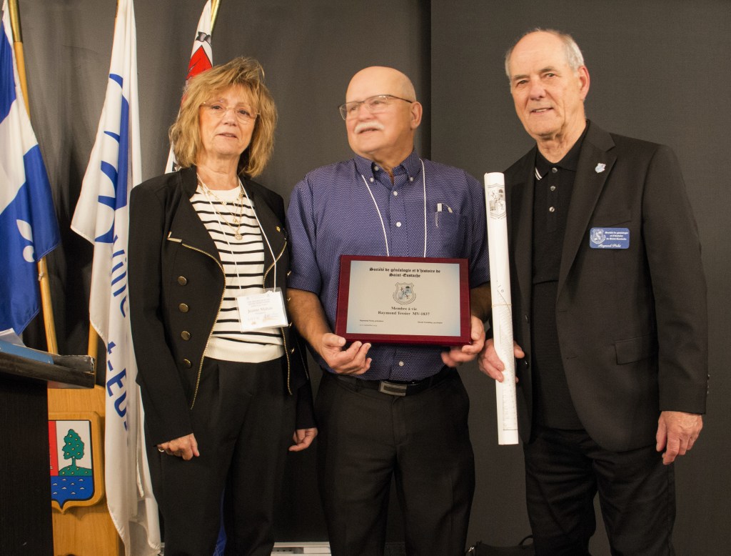 Jeanne Maltais, présidente de la FQSG, Raymond Tessier, membre à vie, Raymond Piché, président de la SGHSE. Photo de Michel Bergeron.